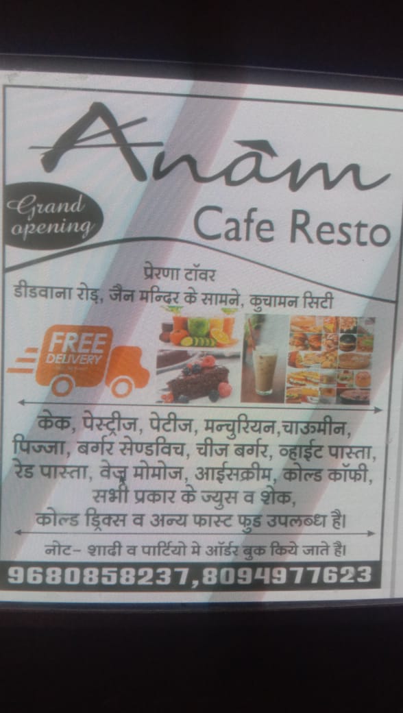 Welcome to Anam Cafe Resto, a delightful gem nestled in the heart of Kuchaman City, located at Ahinsa Circle, Prerana Tower. This charming cafe is a must-visit for anyone seeking a cozy spot to unwind while indulging in delicious vegetarian delights.